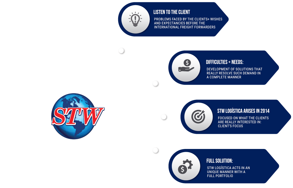 We are a 100% Brazilian company. We were born from our client’s needs and with our clients’ focus. We understand and map the difficulties faced by the importers and exporters in the International Freight Forwarder area, and from the wishes and needs, aligned with our knowledge of more than 20 years in the Foreign Trade area, in 2014 we created STW Logística.