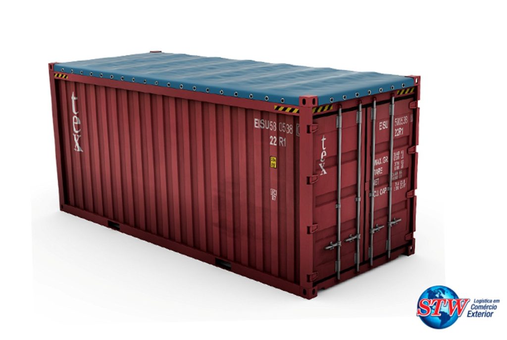 Usage: destined to transport irregular cargo or cargo that can only be transported on top (cargo with excessive height) The cargo is protected by a tarpaulin fixed on top of the container.